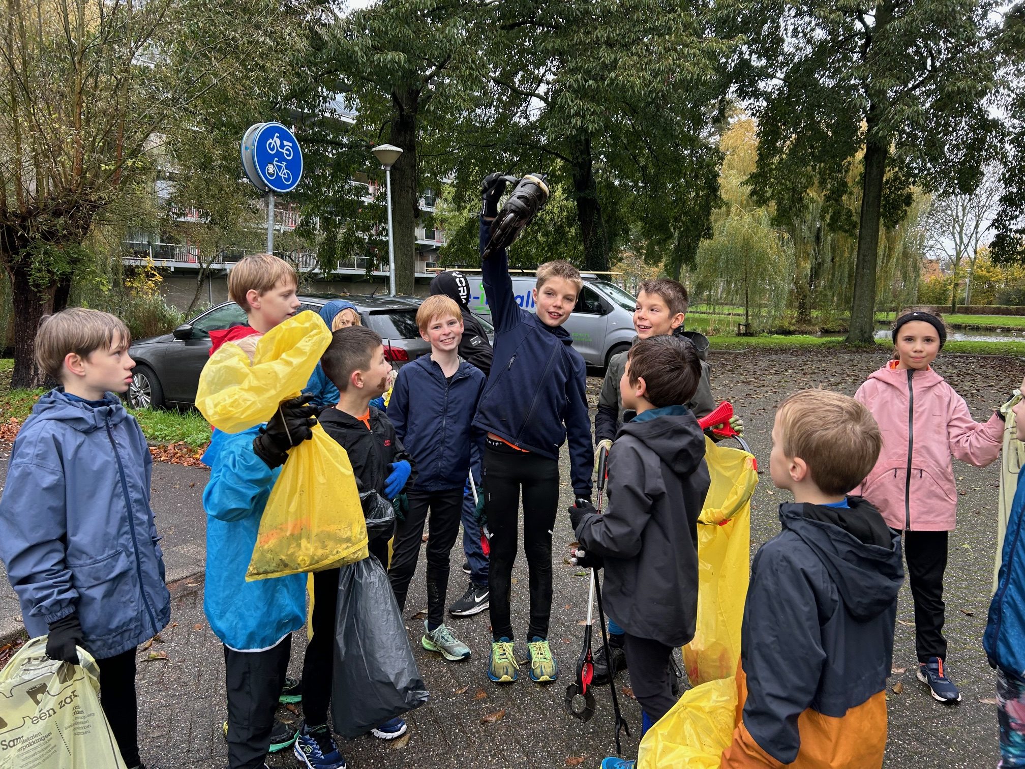 Tijdens de klimaatweek van Woerden ging de jeugd van Clytoneus tijdens hun wekelijkse parktraining ploggen: hardlopen én afval rapen tegelijk.