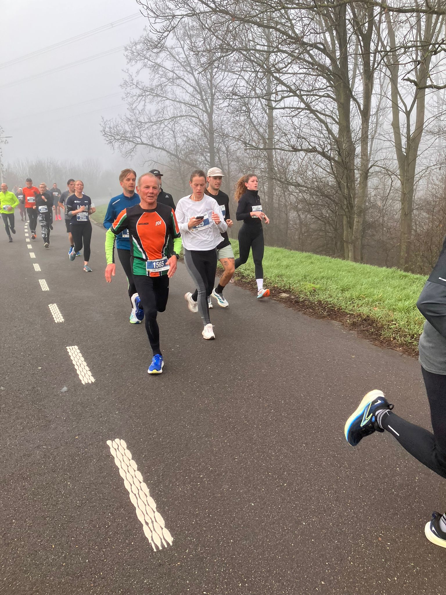 De weersomstandigheden waren nagenoeg perfect. Een graadje of 8 met een zwakke oostenwind. Het parcours was ten opzichte van de vorige jaren enigszins aangepast, waardoor het laatste stuk richting de finish niet meer slingerend door een woonwijk liep, maar gewoon direct vanaf de Cattenbroekerdijk in één (nagenoeg) rechte lijn naar de finish. Erg prettig!