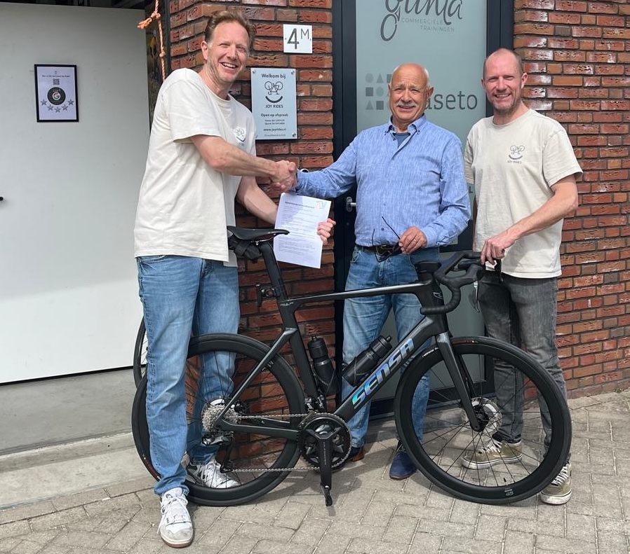 Joy Rides sloot onlangs een sponsorovereenkomst met Clytoneus. Vlnr: Tomas Planken (Joy Rides), Hans van Mastwijk (Clytoneus) en Sjoerd Schippers (Joy Rides)
